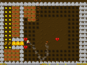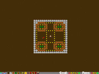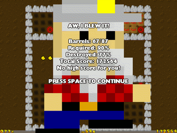 It's another 48-hour contest entry! The theme for this one was Chain Reaction. The Bigbux Mining Company is shutting down the mine, so it's up to you to go inside and level the place, making sure no kids can wander in and get trapped. Along the way, you need to shoot for a high score using a combination of strategy and plain old quick thinking. Score multipliers (like you often find in abandoned mines) and leftover gold nuggets lie strewn about to enhance your score.