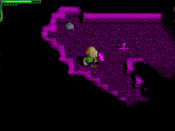 As luck would have it, Bouapha's car has broken down in front of a small forest village known as Sleepless Hollow. But the town appears to be completely empty (if you don't count hordes of angry monsters), and a series of conveniently scattered journal pages are the only clues...